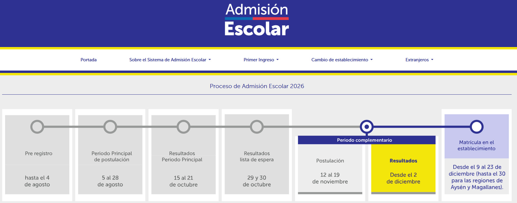 - Martes 9 al martes 30 de diciembre: Matrícula en establecimientos (Regiones de Aysén y Magallanes)